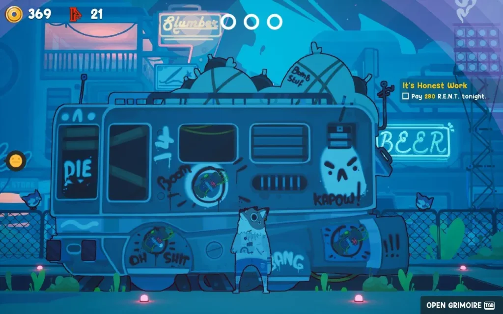 A jeśli chodzi o humor — Uncle Chop’s jest przepełniony absurdalnym stylem, który przypomina mi mieszankę Adventure Time i Rick and Morty. Gra jest pełna czarnego humoru i dziwnych postaci, które na pewno poprawią Ci nastrój, nawet jeśli coś pójdzie nie tak i skończysz dzień martwy. Swojego szefa, holograficznego świniaka o imieniu Uncle Chop, nie polubiłem od samego początku — jego nieustanne żądania i zabieranie moich zarobków sprawiają, że czasem ma się ochotę po prostu wyłączyć grę. Ale to część zabawy!